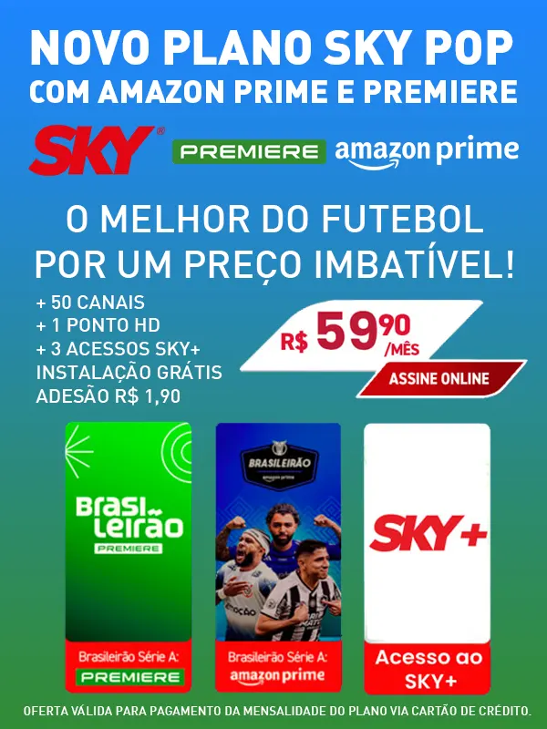"Sou fanático por futebol e a SKY me oferece tudo que preciso! Premiere, SporTV, ESPN... não perco nenhum jogo do meu time. A instalação foi super rápida e o técnico muito educado. Já indiquei para vários amigos e todos ficaram satisfeitos. Vale cada centavo!"